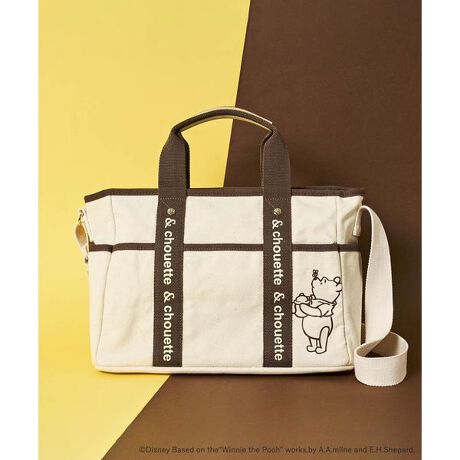 ◇& chouette(アンドシュエット)のくまのプーさんコレクション キャンバストートバッグアンドシュエットから大人気キャラクターWinnie the Pooh Collection 登場!蜂のモチーフを取り入れた金具がポイント。荷物もしっかり入り、オールシーズン使えるトートバッグはシーン問わず大活躍!!A4サイズも入るたっぷりな収納力に加えて、正面にはスマートフォンなどの収納に便利なオープンポケット、バッグの両マチのサイドポケット、内側のミニポケット2ヶ所など、整頓のしやすさも考慮した作りです♪