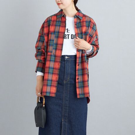 シップスの〈手洗い可能〉ネルチェックビッグシャツ。