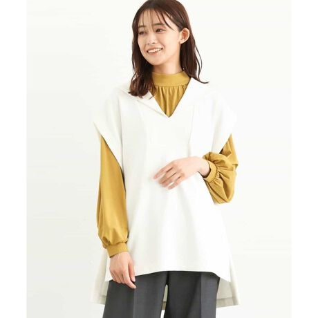 フード付きのトレンド感のあるベスト。サイドの大胆なスリットが軽やかさもあり、レイヤードスタイルがモードに決まります。リラックス感のあるサイズ感が大人カジュアルな雰囲気に。
