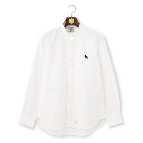 ■デザイン衿型はバンドカラー、下前にヘリンボンテープが配されたシャツ羽織タイプです。胸にはバックブルのエンブロイダリーワッペン付です。■素材定番のオックス素材に、製品染めを施しています。先染めのオックスと異なり、ソリッドでフラットな見え感が特徴的です。