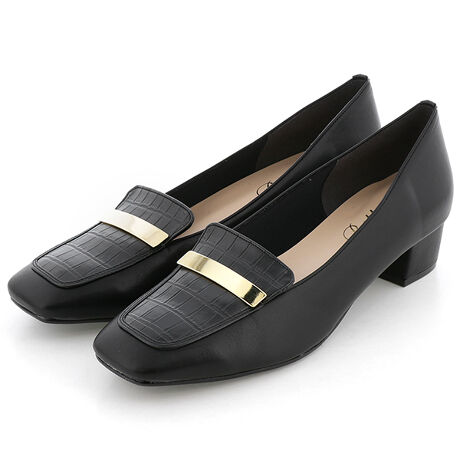 優しい丸みがあるスクエアトゥのローファーパンプス。