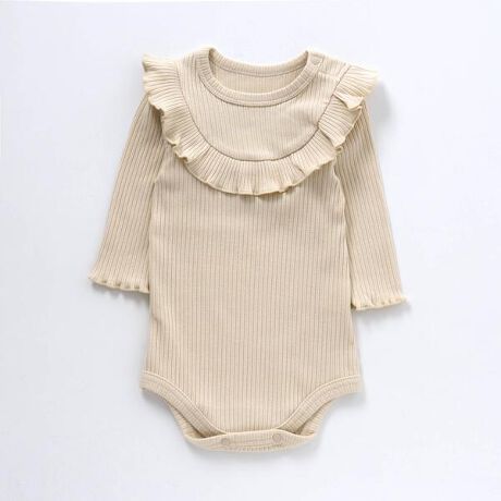 BREEZE(ブリーズ)のカバーオール・ロンパース「フリルリブボディスーツ」は、手頃な価格とアメカジテイストを取り入れた大人顔負けのデザインが人気!出産祝いにもどうぞ!