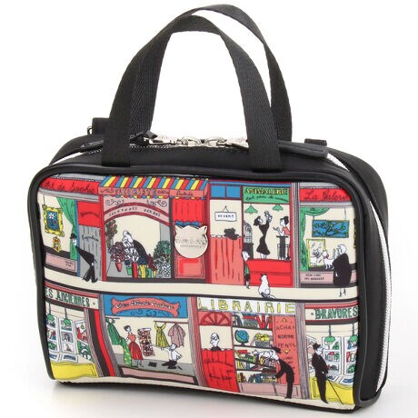 [型番:PJA-P695]パリの街並みをイメージしたオリジナルのイラストが楽しい持ち手つきポーチです。付属のショルダーストラップを付けるとショルダーバッグとしてご使用いただけます。猫型のロゴ入りプレートがポイント。