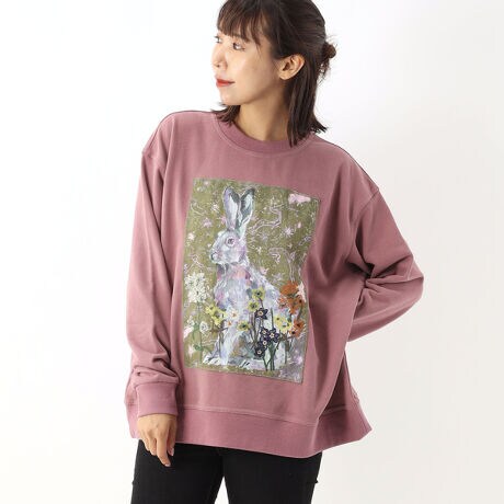 アーティストコラボ ピーチ裏毛「Hare」プリント+刺繍トレーナー