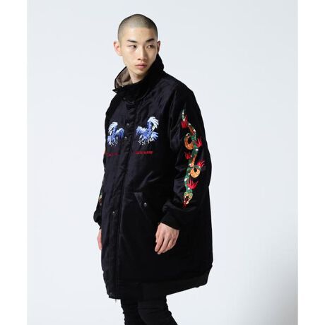 八咫烏と蛇の刺繍が入ったスカジャン型のリバーシブルコート。