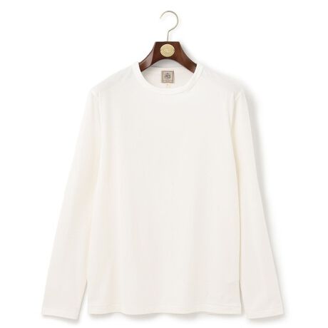 ■デザインロングスリーブのTシャツです。レギュラーフィットなサイジング、首の伸びを軽減させるテープを使用するなどシンプルなデザインにまとめていますので細部に注意を払って作成されています。デザインのワンポイントとして裾にチェーンステッチという手法で”J.PRESS U.S.A”という刺繍が入っています。■素材メンズTシャツのスタンダードな肉感である40/2という糸で編立られている綿100%の天竺。ほど良い肉感で重宝する素材です。