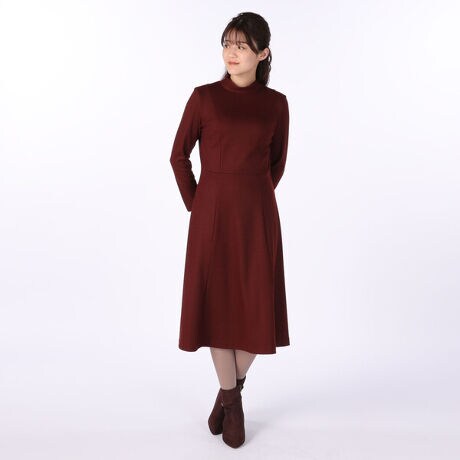 シルエットにこだわったシンプルなデザインが着る人の個性を引き立てるボトルネックワンピース。ウエストで切替え、裾に向かって広がるフィット&フレアのラインが美しいアイテムです。バックジップクロージャー仕様。優しい肌触りとあたたかな着心地の毛100%素材を採用しています。