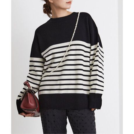 ゆったりとしたシルエットのパネルボーダーニットプルオーバー。