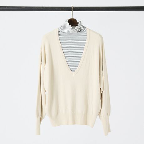 [型番:72459940561]ハイネックプルオーバーとVネックプルオーバーのアンサンブルセット。それぞれ単品でもお使いいただけてコーディネートの幅が広がります。ハイネックがボーダーの組み合わせはWEB限定販売となります。