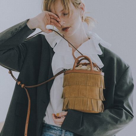 アクセサリー感覚で持ちたい、フリンジ付きのバケツ型ショルダーバッグ。