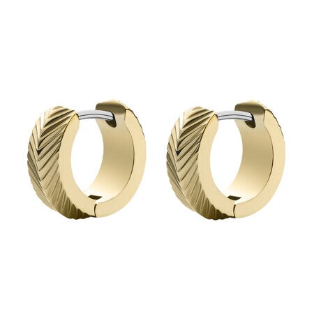 ゴールドトーンのステンレススチール製ハギーフープピアス。ポストタイプ。