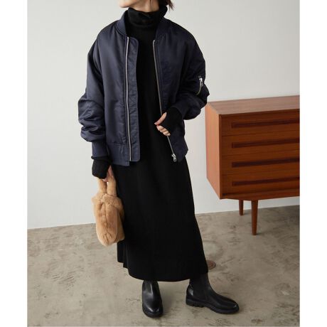 生地がつるんとしていてストンと落ちてくれるニットですが程よく厚みがあるのでラインを拾わず着やすそうです!形が綺麗に見える分、生地はすごく伸びるわけではなく首が、着るとき多少キツいかなくらいですごくかわいいです。