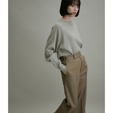ウール混の5×2ワイドリブを使用。さらりとした肌触りで初秋から取り入れやすく、毛玉になりにくいのも魅力。