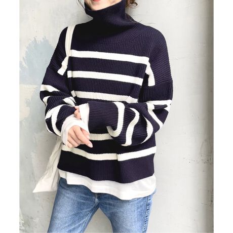 ボーダーニットハイネックプルオーバー
