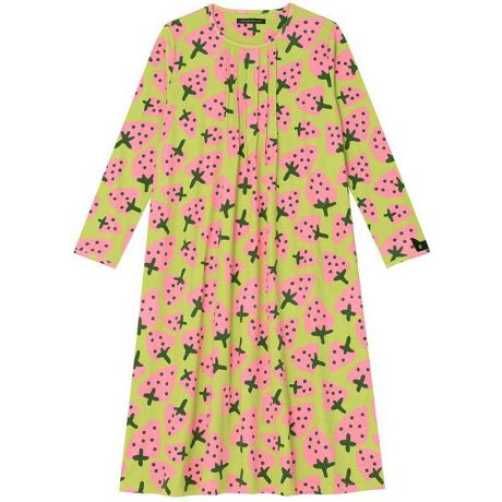 【ワンピース(ロング袖)】クリエーター“俣野温子”氏がデザインする、甘くなりすぎない大人かわいいテキスタイルとカラーで、くつろぎ時間を楽しく過ごせるパジャマ&ルームウェア綿100%のスムース素材です。いちごの柄をプリントしました。左袖口の黒猫のアップリケがデザインのポイントです。※アイテムによって柄の出方が異なりますのでご了承ください。【サイズ詳細】M:バスト107.0cm 着丈110.0cmL:バスト115.0cm 着丈110.0cmLL:バスト123.0cm 着丈111.0cm※出来上がり寸法を表示しております。※サイズ詳細の寸法には多少の差異がございます。
