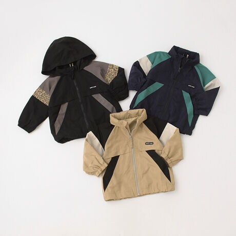雨の日にうれしいはっ水加工をほどこしたウィンブレです。パーツによって配色を変えたブロッキングデザインがシンプルながらもおしゃれに見えるポイント。フードは衿元に収納するタイプなので、お出かけ先でもありなしどちらも着用可能です。内側にはお名前を記入できるタグつき。【透け感】透けない【生地の厚さ】普通【伸縮性】なし【裏地】あり【ポケット】あり