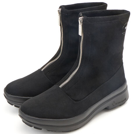 トレンドのアウトドアスタイルからインスパイアしたラグソールデザイン。凹凸感やボリュームのあるソールデザインながら、クッション性のあるインジェクションEVAソール仕様にしています。さらにラバーパーツを前足部と後足部に適材配置することで、グリップ性と軽量性を考慮しました。また、アッパーフロントにジッパーを搭載することで、脱ぎ履きしやすいだけでなく、ファッションのアクセントになるようなデザインにしています。秋口からのスタイリングにマッチし、雨や雪にも対応する、デザインと機能を両立したモデルです