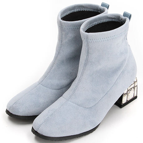 【AW2B】ラウンドトゥビジューヒールストレッチショートブーツ