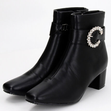 【AW2B】2WAYビジューバックルスクエァトゥストレッチショートブーツ