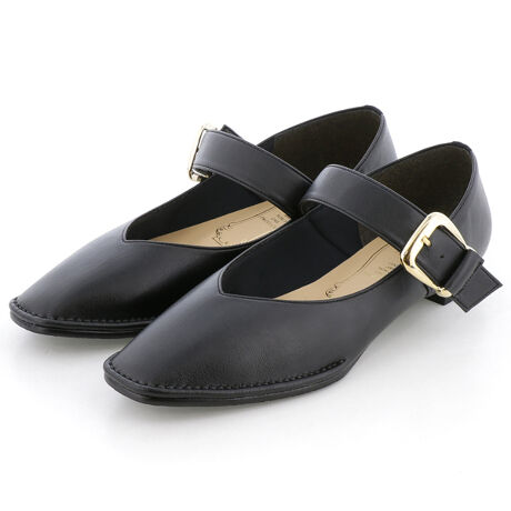 スクエアトゥ Vカットアウトステッチ ストラップシューズ