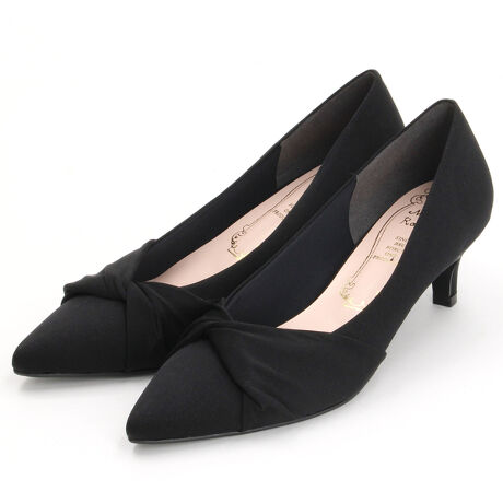 ターバンをねじったワンポイントデザインの5,5cmヒールパンプスです。シンプルな中にさりげなく同素材のターバンを使用したことで、かわいく仕上がっています。お仕事、普段履きでもOKな万能パンプスです。ソフトタッチクッションでやわらかソール。