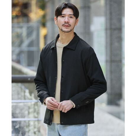 程よい光沢感を持つ上品な印象の生地で仕立てたコーチジャケット。 カジュアルなイメージが強いコーチジャケットのデザインを、キレイめにも着こなせるようにブラッシュアップした1着。 ゆとりを持たせつつも着丈と身幅を調節してルーズすぎないサイズ感に仕上げました。 シンプルなデザイン&生地の質感に合わせた生地と同色のスナップボタンを採用するなど、キレイめなボトムとも合うすっきりとしたデザインがポイントです。
