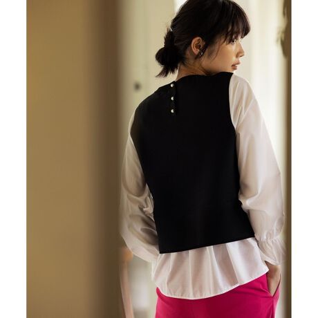 ■デザイン おしゃれ上級者なレイヤードスタイルを1枚で完成させてくれるサマ見え時短トップス。ふんわりスリーブブラウスとのレイヤード風で、脇に入ったスリットからブラウスがのぞくようなデザインになっています。パンツにもスカートにも合わせやすい絶妙な着丈感は、目線を上げてくれるので気になるヒップラインもさり気なくカバーしてくれます。ニュアンス感のあるアイボリーと目を惹くグリーン、締め色のブラックの3色展開です。