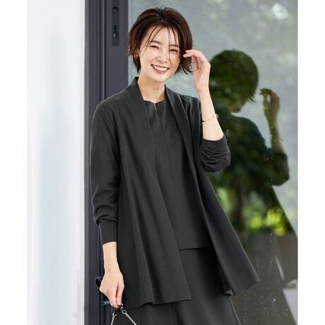 端境期に便利な着流しカーディガン。後ろ衿の下にタックを入れ表情を出し、軽やかな印象に仕上げました。ヒップの隠れる丈感も嬉しいポイント。同素材のトップスやスカートと合わせて着るのもおすすめです。