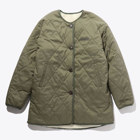 秋冬に大人気のキルティング×ボアのリバーシブルジャケット。たっぷりとボリューム感のあるシルエットが、サッと織れてサッと脱げる、着脱を楽にしたリラックスフィットのアイテムです。キルティング面には、コロンビア独自のオムニシールド【はっ水(撥水)加工】を施し、多少の雨天時にも安心して着用可能。ボア面は、保温力もさることながらふんわりとした心地良い肌ざわりが魅力です。長めの着丈が、気になる腰回りをしっかりとカバー。ノーカラー仕立てのシンプルなデザインなので、シーンを選ばず、幅広いスタイリングに重宝します。