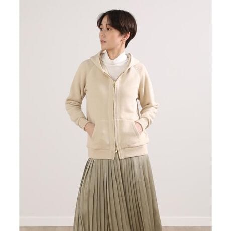 ベーシックなフード付きジップアップパーカー。ステッチワークや襟ぐりのテープ使い、程良いサイズ感など定番アイテムだからこそ着心地の良さを追求した1枚。軽くて柔らかい素材感を活かしたシンプルなデザインは汎用性が高く、幅広いコーディネートに活用いただけます。・水洗い可《吊り裏毛》吊り編み機で作られたこだわりの裏毛生地を使用。生産性の低さと引き換えに創られた風合い。1時間に1メートルの生地しか生み出せない非効率極まりない製法。いうなれば手編みに近い状態。その結果、柔らかくふくらみ豊かな生地を生み、 高い伸縮性や保湿性、耐久性を併せ持ちます。***************伸縮性:有り透け感:無し生地の厚さ:普通***************レビューSTAFF.Y・W(年齢:40代/身長:160cm/普段の着用サイズ:9号・トップス9号・ボトム9号・アウター9号)着用カラー/サイズ:グレー/9号全体的に程よくゆとりがあり、インナーはカットソーだけでなくシャツやニットも着られます。生地の目が詰まっていて保温性が高いです。■サンプル撮影商品■こちらの商品はサンプルでの撮影となっております。実際の商品とは、サイズや色味、素材、デザイン等の仕様が若干変更になる場合がございます。
