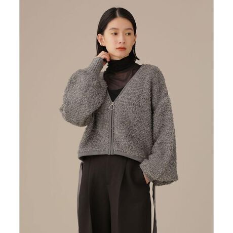 膨らみのあるブークレ糸をループ編みしたニットが特徴のジップアッププルオーバー。羽織としてはもちろん、プルオーバーや前後2WAYでも着られる着回し力の高さも魅力的。今年らしいショート丈やボリュームスリーブがこなれ感をプラスし、リングファスナーがアクセントを効かせたデザイン。秋には軽アウターとして、冬にはインナーとしてレイヤードスタイルを楽しめる一枚です。