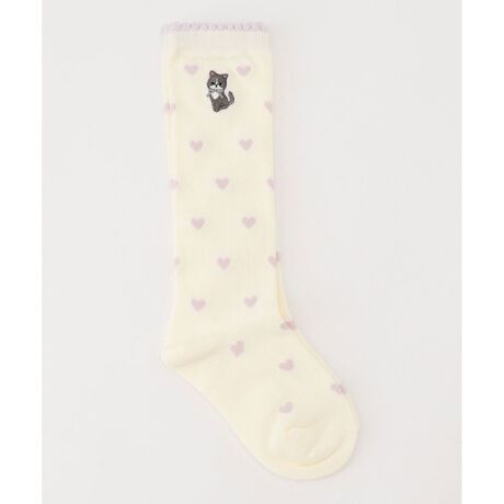 足元から飾ってくれる、アニマルワンポイントのハイソックス。ベーシックなカラーからコーディネートのポイントになるカラーまでカラフルな展開です。ハートのドット柄と、ネコの刺繍ポイントがキュートなアイテム。これさえあれば、寒い時期にもショートパンツやスカートを可愛く楽しめます♪