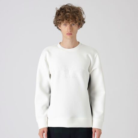 フロントにカレッジロゴをあしらったスウェットシャツ。カジュアル感強いカレッジロゴもグラフィカルにアレンジし刺繍であしらう事で上品な見映えに。脇部分もさり気なくブラックウォッチカラーのチェックで切り替えたブラックレーベルならではのオトナな一着に仕上がっています。