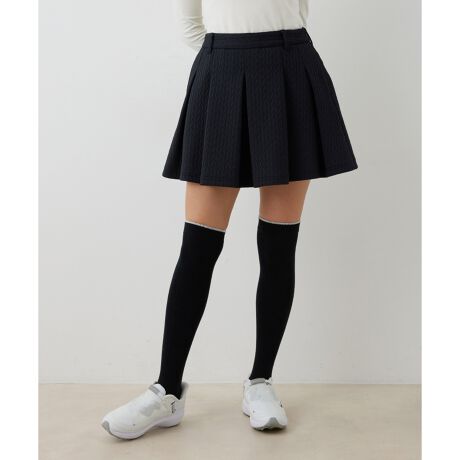 ヘリンボーン柄をキルト加工した、ふんわりとしたタック使いがコーディネイトの主役になるジャガードフレアスカート。