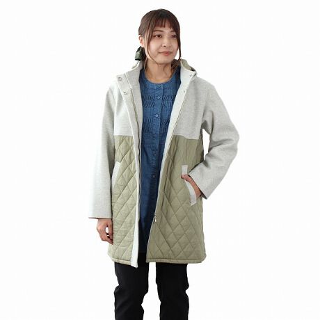 【M〜5L】【MB】【mintbreeze】異素材 切替 メルトン × 中綿コート