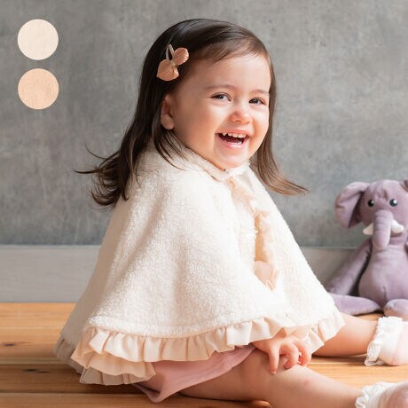 ふわふわのボアフリース素材のマント・ケープ・ポンチョ。女の子らしいフリル使いもポイントです!対応サイズはSサイズが70〜80cm、Mサイズが90〜100cmです。長く着れるケープ、マント、ポンチョはサイズ感が難しい出産祝いやギフト、プレゼントにもオススメです。【アイテム】プレゼント ギフト プルオーバー 赤ちゃん服 ベビー服 贈り物 トップス 無地 シンプル ガーリー カジュアル お洒落 オシャレ かわいい 可愛い 普段着 デイリーウェア お出かけ着 子ども こども 女児 女の子 ガールズ キッズ ベビーサイズ 幼稚園 保育園通園 2022年秋冬物新作 丸高衣料 ロングスリーブ 長袖 ホワイト 白色 ピンク キッズズー