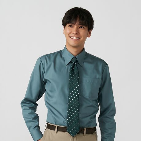 形態安定 スナップダウンカラー 綿100% 長袖ワイシャツ くすみカラーくるみボタン