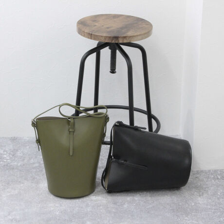 ・W FACEレザーのバケツ型ショルダーバック