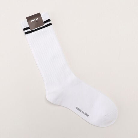 [型番:07-54QA08-202]2本ラインの入ったスポーティなルックス。カジュアルシーンで使えるトレンドのホワイトソックスが新登場です。