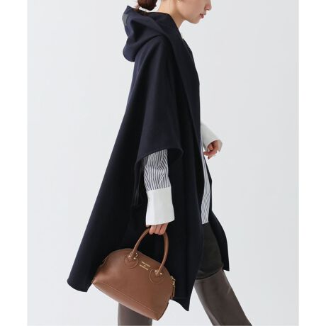 非常に軽く下に着るものを選ばない、便利でシンプルなポンチョ型のフードコート。しなやかに体に沿うシルエットで、普段着のカジュアル使いはもちろん、少し気取った席にも対応でき、幅広いコーディネートで楽しんでいただけます。カジュアルな装いもトラッドで上品な雰囲気に仕上がるネイビー色で別注しています。