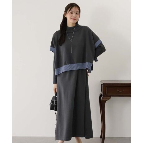 マルイウェブチャネル   /   ブルーイースト   /   ワンピースドレス   /   ワンピース   /   【選べる2丈】サイドリボンケープニットベスト&リブニットワンピース セットアップ
