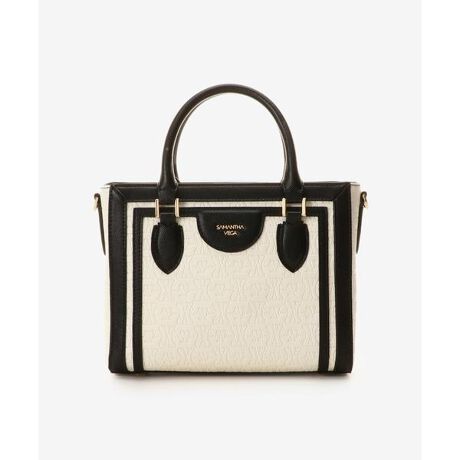 ◇SAMANTHAVEGA(サマンサベガ)のロゴ型押しハンドバッグSAMANTHAVEGAのSVのロゴの型押しのシリーズ。お洋服とコーディネートしやすい配色になっています。あおりポケットがついているのでスマートフォンやパスケースなどサッと取り出したいアイテムを入れていただけます。