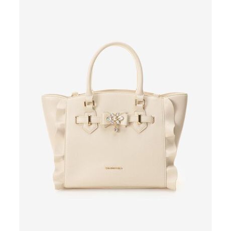 ◇SAMANTHAVEGA(サマンサベガ)のビジューリボンフラッター(小)大人気ベストセラーフラッターのシリーズよりアップデートしたビジューリボンフラッター。正面のボリュームのあるリボンと、キラキラのお花チャームがポイント。歩く度に揺れる、お花チャームから滴るビジューがロマンティックなシリーズです。▽デザイン・素材を重ねたボリュームのある立体的なリボンがこだわり。・ジュエリーのようなキラキラなお花チャームは、パールと偏光ビジューの組み合わせで可愛さ倍増です。・底鋲もハートの形で見えないところまでラブリー。▽機能性・小ぶりながら長財布も収納可能なサイズ・バッグの中にはパスケースや鍵が取り付け可能なチェーン付き。バッグの中で迷子になりません。・2WAYの仕様で斜め掛けも◎【対応しているもの】・長財布・ペットボトル縦/横向き(500ml)