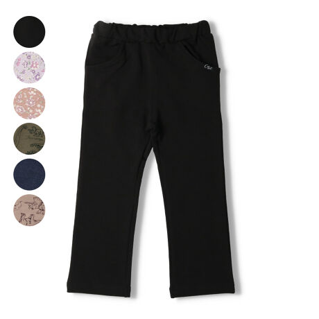 トレーナーよりは薄手、Tシャツよりは厚手のミニ裏毛素材が丁度いい。ストレッチもきいているので履かせるのも楽ちんで、動きやすそう!!お部屋着や保育園などのお着替え用にもオススメです。男の子も女の子もユニセックスで着られる無地のブラック、コン、女の子向けの小花柄のラベンダーとピンク、男の子に人気の恐竜柄のカーキグリーン、ベージュの6色展開です。【アイテム】シンプル ベーシック 無地 カジュアル お洒落 オシャレ かっこいい かわいい 可愛い 普段着 お外着 お外遊び着 デイリーウェア お出かけ着 ロング丈 長丈 長ズボン フル丈 ボトムス 子ども こども 男児 男の子 ボーイズ キッズ ベビーサイズ トドラーサイズ 幼稚園 保育園 小学校 通園 通学 小学生 2022年秋冬物新作 丸高衣料 女児 女の子 ガールズ ユニセックス 男女兼用 フラワー ダイナソー ブラック 黒色 ラベンダー パープル 薄紫色 ピンク カーキグリーン 深緑色 コン ネイビー 紺色 ベージュ