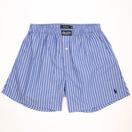 表面がなめらかで光沢のあるコットン100%の平織生地のトランクスです。爽やかで落ち着きのあるストライプ柄で、フロントセンターに縫い付けたラベルと、左裾に入ったブランドアイコンのポロプレイヤー刺繍がポイント。ブランドロゴが刻印されたボタンもさりげないこだわりです。前開き仕様。オーガニックコットン使用。