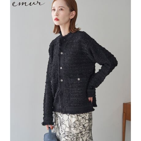 【emur】フリンジツイードニットカーディガン