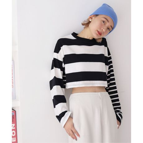メンズサイズをリメイクしたようなバランスに仕上げたクロップド丈のロンTEE。