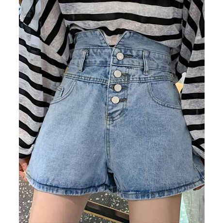 レディース ハイウエストスタイルアップデニムショートパンツ
