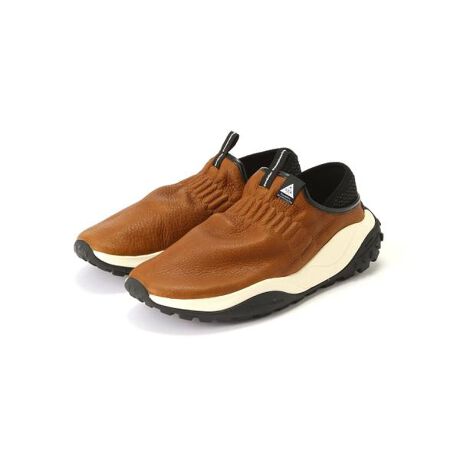 Flower MOUNTAINのキャンピングチーム 「DMA」からリリースされる “KOLOBOK”のコンセプトは「オフロード&ラギット&イージー」。ワイドなラストで踵が踏める仕様などイージーな要素はスタンダードモデル”CAMP”からそのまま継承しつつ、オフロードタイヤの設計からインスパイアされたソールがラギットなMOCシューズへとブラッシュアップしている。サイドとヒール部の巻き上がりが特徴的なソールのラグが様々な角度で地形に食いつき悪路に対応。アッパーには贅沢に牛のプルアップレザー(BROWN)の一枚革を使用。履き込むほどに味わいと柔らかさが増し、自分だけの風合いを持つキャンプ用MOCシューズとなる。※FlowerMOUNTAINは靴内部には抗菌・防臭機能のあるagion社製の素材を使用し、インソールには吸湿性に富んだコルク素材を使用しています。Flower MOUNTAIN/フラワー マウンテン-brand spirit-現在、大量に生産され大量に消費されているスニーカー。物が増え豊かになり、そして日々新しい技術が開発されています。しかし、忘れてはいけないのはそのテクノロジーの根底にある“物作りの歴史”と“職人の魂”です。Flower MOUNTAINはその歴史と精神をリスペクトし、人の手で生み出されたあたたかさが感じられる商品作りを大切に考えています。-Hand Craft-手作業による革紐を使用したステッチワーク、一つ一つ職人が手作業で仕上げる飾り穴。スニーカーのデザインにはあまり使用されない技術です。手間がかかり繊細な技術が必要とされるハンドメイド。このハンドメイドのみが表現できる雰囲気と質感。それはフラワーマウンテンのオリジナリティーの核となる要素となっています。-Intricate detailst-複雑に重なり合い構成されるデザイン。滑らかな曲線を描くステッチライン。自然の造形からインスピレーションを受けた細やかなディティールにはブランドの魂が込められています。Flower MOUNTAINのデザイン的な大きな特徴となっています。-Function-「Flower MOUNTAIN」はファッションの側面だけではなく靴としての機能性も追求しています。人間の足の形状と運動に即した木型の設計と衝撃を吸収しグリップ力に優れたソ