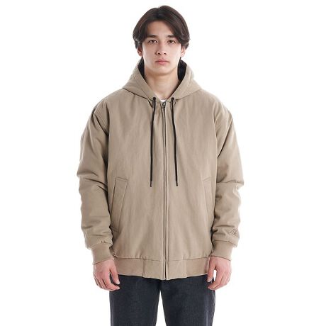 地厚なダッククロスを使用した、中綿入りフード付きジャケット。特殊なウォッシュ加工によってユーズド感をだしました。フードの頭頂部と袖口部分には、生地と同系色のQuiksilverグラフィック刺繍が入ります。シルエットはファッショナブルなリラックスフィット。